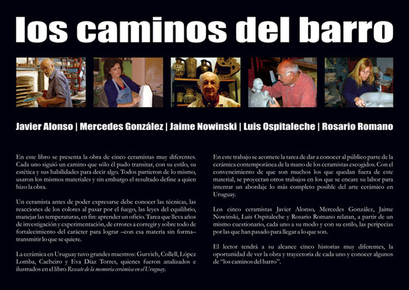 Los cinco ceramistas Javier Alonso, Mercedes González, Jaime Nowinski, Luis Ospitaleche y Rosario Romano relatan, a partir de un mismo cuestionario, cada uno a su modo y con su estilo, las peripecias por las que han pasado para llegar a lo que son.
